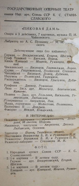 `Пиковая Дама`. Опера в 3-х действиях. (Фотоминиатюры). М.: Союзфото-Фотохудожник, 1937. 750 руб. В корзину Описание Описание `Пиковая Дама`. Опера в 3-х действиях. (Фотоминиатюры). М.: Союзфото-Фотохудожник, 1937. – 16 фото. Футляр. Миниатюрный формат, 10х7.5 см. Хорошее состояние. Небольшие дефекты футляра. Вас также может заинтересоватьВ корзинуГосударственный строй и политические партии в Зап. Европе и Сев.- Америк. Соедин. Штатах. В 3-х томах. (Комплект). Редакция Е.Смирнова. СПб.: Издание Н.Глаголева, [1903-1905].18 000 ₽ В корзинуВ корзинуСокращенное систематическое собрание действующих законов Союза ССР и РСФСР. М.: Госюриздат, 1930.5 800 ₽ В корзину