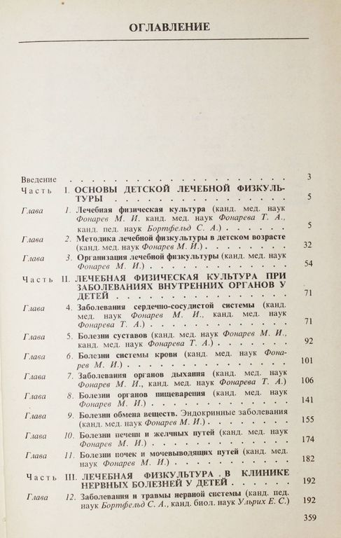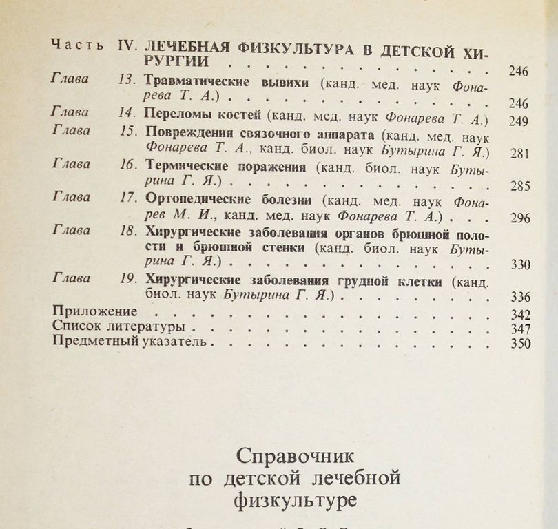 Справочник по детской лечебной физкультуре. Под ред. М.И. Фонарева. М.: Медицина. 1983г. 360 с., ил. В справочнике в краткой форме излагаются современные вопросы теории и практики лечебной физкультуры в педиатрии. В нем разбираются общие основы применения лечебной физкультуры: средства, организация работы, механизм действия, врачебная тактика использования средств в комплексной терапии. В специальных разделах приводятся сведения о методике применения лечебной физкультуры при заболеваниях внутренних органов у детей, болезнях и повреждениях нервной системы, в детской хирургической и ортопедической клиниках. Нозологические формы в каждом разделе размещены по группам заболеваний и алфавиту. Сведения об этиологии, патогенезе, клинике, особенностях комплексной терапии приводятся в объеме, необходимом для правильной постановки и понимания задач лечебной физкультуры и построения рациональной методики ее применения. Твердый переплет. Обычный формат. Отличное состояние.