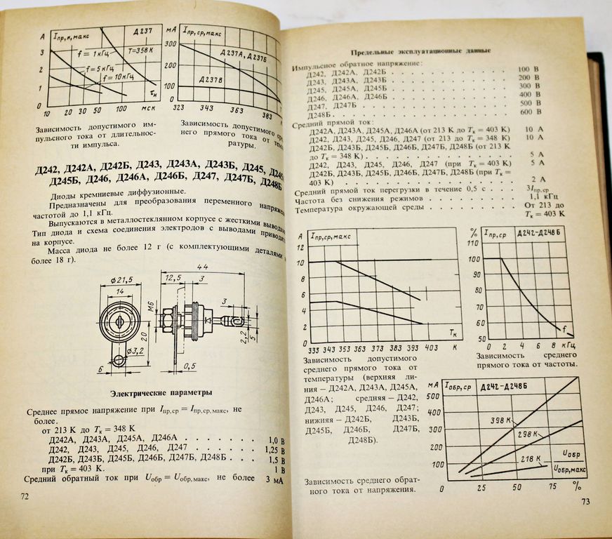 Полупроводниковые приборы: диоды, тиристоры, оптоэлектронные приборы. Справочник. М.: Энергоатомиздат. 1984г. 744 с. Приведены электрические параметры, габаритные размеры, предельные эксплуатационные данные и другие характеристики отечественных серийно выпускаемых полупроводниковых диодов, тиристоров, светодиодов и оптронов широкого применения. Твердый переплет. Обычный формат. Хорошее состояние.