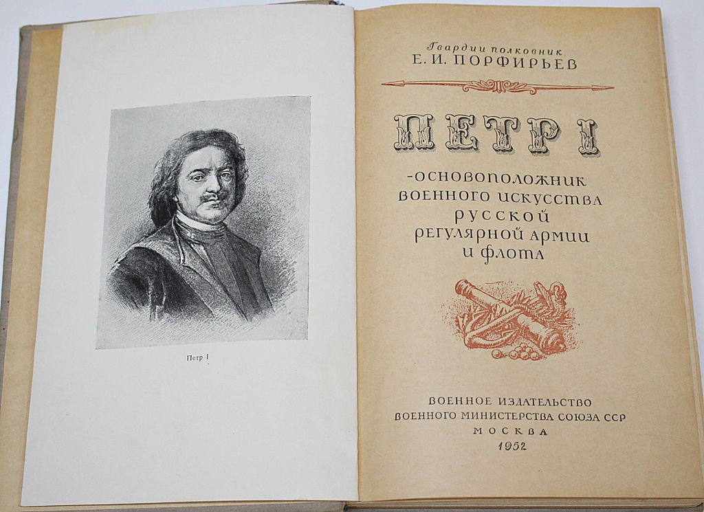 Порфирьев Е.И. Петр I – основоположник военного искусства русской регулярной армии и флота. М.: Воениздат. 1952г. 288с. Состояние русского государства перед реформами Петра Первого. Состояние русских вооруженных сил и военного искусства перед реформами. Азовские походы. Государственная деятельность Петра Первого. Военные реформы Петра. Северная Война в период 1700-1709, Война с Турцией 1711. Война в Финляндии 1712-1714. и др. Твердый переплет. Увеличенный формат. Хорошее состояние.