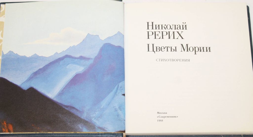 Рерих Николай. Цветы Мории. Стихотворения. М.: Современник. 1988г. 160 с.,ил. В своих стихах Н. Рерих соединяет русскую и индийскую поэтические традиции. Его произведения - это своеобразные духовные воззвания, которые устремляют силы человека к героическому напряжению и светлым свершениям. Они нетрадиционны по форме, это белый стих, свободный размер. Твердый переплет. Уменьшенный формат. Отличное состояние.