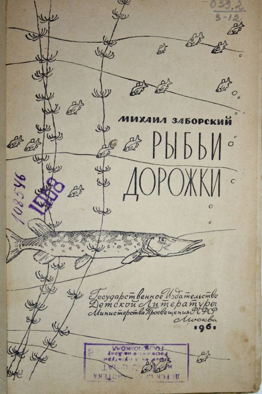 Заборский М. Рыбьи дорожки. Рисунки Г. Алимова. М.: Детгиз. 1961г. 110 с.,ил. Детям о рыбалке. Прочитав эту книгу, можно принять к сведению совет бывалого рыболова о том, где, как и на что проще поймать рыбу. Можно узнать кое-что любопытное о рыбьих повадках. Воспользоваться замечаниями об оснастке рыболова и о многих других, казалось бы, на первый взгляд мелочах, значение которых оценишь потом, на рыбалке. Но это только часть содержания книги. Еще в ней собраны воспоминания автора о великих рыбацких радостях, где без остатка растворились крупицы горестей и неудач. Твердый переплет. Увеличенный формат. Уд. состояние,штампы.