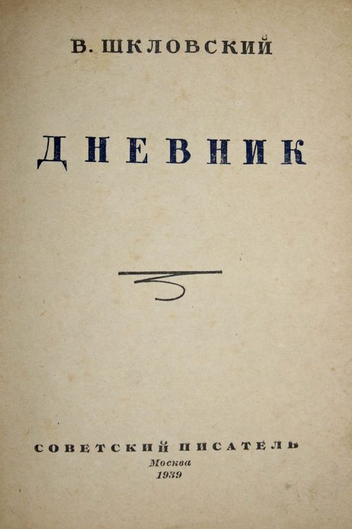 Шкловский В. Дневник. М.: Советский писатель, 1939. – 164 с. Твердый издательский переплет. Уменьшенный формат, 17х13.5 см. В эту книгу вошли статьи о Толстом, Маяковском, о романе Тынянова Ю. `Пушкин` и др. Первое издание книги. Хорошее состояние. Небольшая потертость переплета.