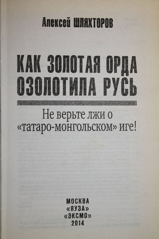 Шляхторов А. Как Золотая Орда озолотила Русь. Не верьте лжи о `татаро-монгольском Иге`! М.: Яуза, Эксмо. 2014 г. 320 с. Нет в нашей истории более лживого и клеветнического мифа, чем «черная легенда» о «татаро-монгольском иге», которое представляют эпохой «постыдного рабства», национального унижения, гнета и «Погибели Русской Земли». Однако эта сенсационная книга доказывает: ВСЕ БЫЛО СОВЕМ НЕ ТАК! Что это за «иго», если за 200 лет население Руси увеличилось вдвое (беспрецедентный рост для средневековой Европы!), а экономика – в два с половиной раза?! Что это за «гнет», если ордынская дань не превышала 3 кг ржи с человека – гораздо меньше льгот, полученных от степных «завоевателей»? Что это за «рабство», если Русь вела полностью независимую внешнюю политику, заключая договора с кем и как считала нужным, и жила по Русской Правде, а не по законам Чингисхана? Что это за «погибель», если союз Руси с Золотой Ордой и Ганзой позволил создать «Северный шелковый путь», который буквально озолотил Москву, уберег нашу землю от хищного Ватикана и заложил экономическую основу для грядущего возвышения Русского Царства?! Основываясь не на мифах и бредовых фантазиях в духе Фоменко, а на исторических фактах, последних научных изысканиях и правильно переведенных первоисточниках (а у нас даже в энциклопедии Брокгауза есть ошибки перевода!), эта книга опровергает самые грязные злокачественные мифы и обеляет нашу древнюю историю. Твердый переплет. Обычный формат. Очень хорошее состояние.