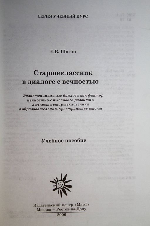 Шоган Е.В. Старшеклассник в диалоге с вечностью. Ростов-на-Дону: ИЦ Март. 2006. 500 руб. В корзину Описание Описание Шоган Е.В. Старшеклассник в диалоге с вечностью. Ростов-на-Дону: ИЦ Март. 2006. 176с. Тираж 500 экз. Мягкий переплет. Обычный формат. Хорошее состояние.