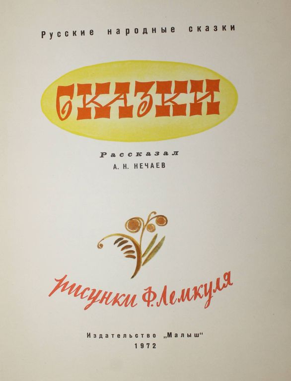 Сказки ( русские народные ). Рассказал А.Н.Нечаев. Художник Ф.Лемкуль. М.:Малыш. 1972г. 68с.,ил. Содержание : 1. Хитрая наука. 2. Волшебные ягоды. 3. Иван Запечный. 4. Царь-чернокнижник и Соломенный колпак. Твердый переплет. Суперобложка. Энциклопедический формат. Хорошее состояние, супер. с надр.