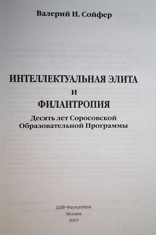 Сойфер В.Н. Интеллектуальная элита и филантропия. Десять лет Соросовской Образовательной Программы. М.: ДДФ Фаундейшн. 2005г. 672 с., ил. После распада Советской империи наука и образование в странах, возникших на ее развалинах, оказались в тяжелом положении: их финансирование было резко уменьшено, начался активный отток лучших ученых за границу, многие области науки, в которых раньше советские ученые успешно конкурировали с их зарубежными коллегами, были заброшены. Российская система среднего и высшего образования, пользовавшаяся заслуженным уважением в мире, стала испытывать огромные трудности. Помощь интеллектуалам оказал крупнейший западный финансист и филантроп Джордж Сорос, выделивший за 12 лет более четверти миллиарда долларов только на поддержку науки и образования в странах бывшего СССР. Значительную роль в пробуждении интереса Сороса к поддержке интеллектуалов сыграл известный советский ученый и общественный деятель В.Н.Сойфер, оказавшийся на Западе в 1988 году. В настоящей книге Сойфер подробно рассказывает о жизни и деятельности Дж.Сороса, об истории создания и деятельности Международного Научного Фонда и Международной Соросовской Программы Образования в Области Точных Наук, о принципах организации конкурсов и специализированных программ в Российской Федерации, Украине, Грузии и Белоруссии. Книга знакомит с деталями филантропической деятельности международного масштаба и будет интересна широкому кругу читателей, интересующихся проблемами науки и образования и ролью науки в современном обществе. Твердый переплет. Увеличенный формат. Очень хорошее состояние.