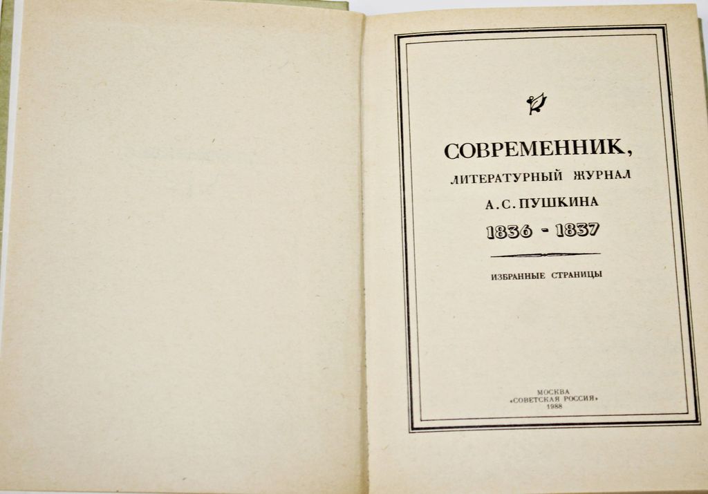 Современник,литературный журнал А.С. Пушкина.1836-1837:Избранные страницы. М.: Советская Россия. 1988г. 384 с. В состав сборника вошли избранные произведения, публиковавшиеся в Современнике, литературном журнале, издававшемся А.С.Пушкиным в 1836 году и материалы для которого он готовил в январе 1837 года. Избранные страницы знакомят читателя с литературной жизнью пушкинского времени. Твердый переплет. Уменьшенный формат. Очень хорошее состояние.