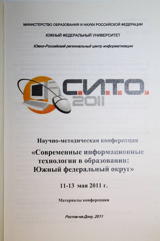 Современные информационные технологии в образовании: Южный федеральный округ 11-13 мая 2011 г. Материалы конференции. Ростов-на-Дону: ЮФУ. 2008. 260с. В сборнике представлены доклады участников научно-методической конференции. Тираж 150 экз. Мягкий переплет. Обычный формат. Очень хорошее состояние.