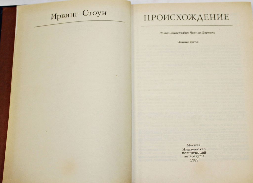 Стоун И. Происхождение. Роман-биография Ч.Дарвина. Серия: Библиотека атеистической литературы. М.: Политиздат. 1989г. 447 с. Роман «Происхождение» повествует о жизни и деятельности Чарльза Дарвина, основателя эволюционной теории, нанесшей сокрушительный удар по религиозной картине мира. Твердый переплет. Обычный формат. Хорошее состояние.