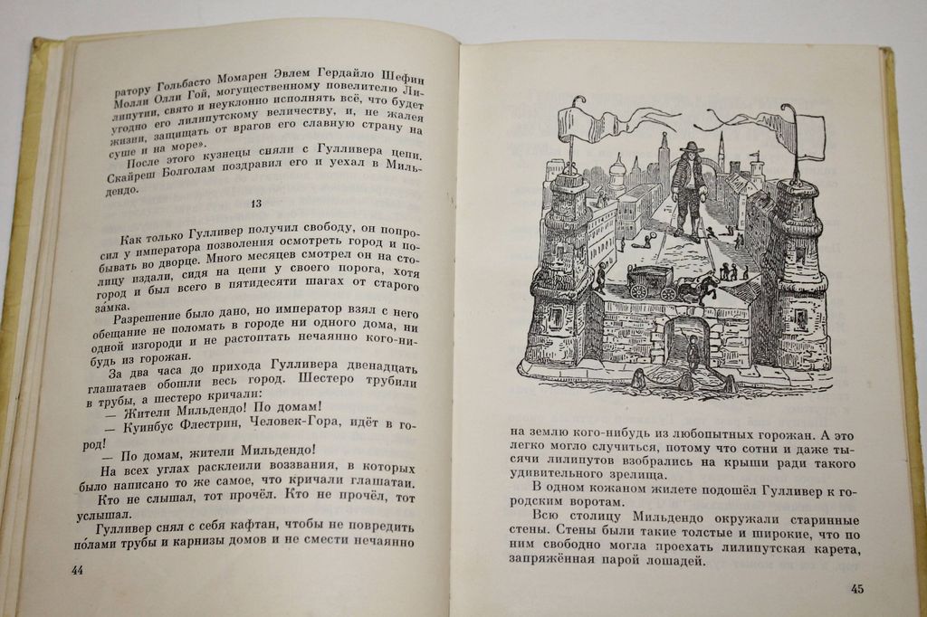Свифт Д. Путешествия Гулливера. Роман. Пересказ Т. Габбе. М.: Детская литература. 1980 г. 158 с.,ил. Роман знаменитого английского писателя Джонатана Свифта `Путешествия в некоторые отдаленные страны света Лемюэля Гулливера, сначала хирурга, а потом капитана нескольких кораблей` вышел из печати в 1726 году. Увлекательное произведение стало классикой не только взрослой, но и детской литературы, так как пересказы этого романа для детей появились еще в XVIII веке. С тех пор в разных странах выпущено множество сокращенных изданий и переложений для детей. В нашей стране лучший пересказ `Путешествий Гулливера` сделала в 1931 году талантливый драматург и переводчик Тамара Габбе. Твердый переплет. Обычный формат. Уд. состояние, библ. штамп.