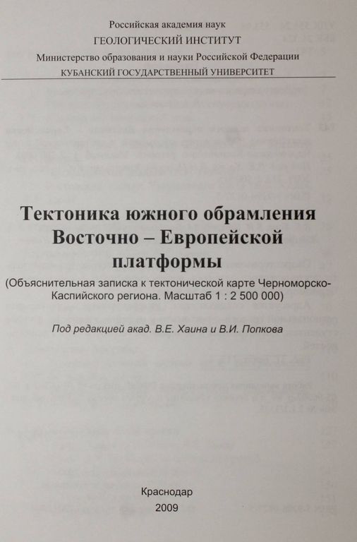 Тектоника южного обрамления Восточно-Европейской платформы. Ред. В.Е.Хаин. Краснодар: Кубанский гос. ун. 2009. 231с. Тираж 500 экз. Охарактеризованы важнейшие геоструктуры, основные черты тектонического развития, нефтегазоносность и сейсмичность Черноморско-Каспийского региона.Адресуется специалистам, интересующихся проблемами региональной геологии тектоники и нефтегазоносноети, а также стучентам магистрантам и аспирантам геологических специальностей. Мягкий переплет. Обычный формат. Отличное состояние.
