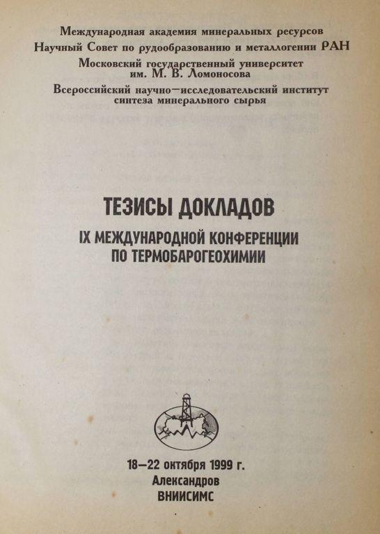 Тезисы докладов 9 Международной конференции по термобарогеохимии. Александров: ВНИИСИМС. 1999. 300 руб. В корзину Описание Описание Тезисы докладов 9 Международной конференции по термобарогеохимии. 18-22 октября 1999 года. Александров: ВНИИСИМС. 1999. 284с. Твердый переплет. Обычный формат. Очень хорошее состояние. Вас также может заинтересоватьВ корзинуМир Льва Гумилева. Арабески истории. Книга 1. Русский взгляд. М.: Ди-Дик. 1994г.280 ₽ В корзину