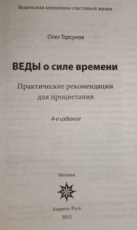 Торсунов О. Веды о силе времени. Практические рекомендации для процветания. Серия: Ведическая концепция семейной жизни. М.: Амрита. 2012г. 288с. Законы жизни человека - это не нечто сухое, теоретическое и ненужное, как кажется с первого взгляда. Достаточно только один раз попробовать применить их на практике, и сразу становится понятно, что они связаны с нашей повседневной жизнью. В данной книге изучается закон времени, который описан ведическим знанием более 5 тысяч лет назад. Он гораздо глубже законов государства или, скажем, физики. Речь идет о закономерностях нашего существования. Понимание и соблюдение их позволяет избавиться от многих жизненных трудностей, хронических и трудноизлечимых болезней, разочарований и неудач. Вы обретете способность верно оценивать обстановку и принимать нужные решения, сможете всегда делать правильный жизненный выбор. Вам больше не придется идти на поводу у событий, поскольку у вас появятся силы многое изменить в своей жизни. Материал книги составлен на основе лекций автора по медицине и психологии, прочитанных для широкой аудитории, он используется каждый день в практической помощи тем, кто в ней нуждается, и призван оказать реальную помощь ищущему счастье человеку. Твердый переплет. Уменьшенный формат. Хорошее состояние.
