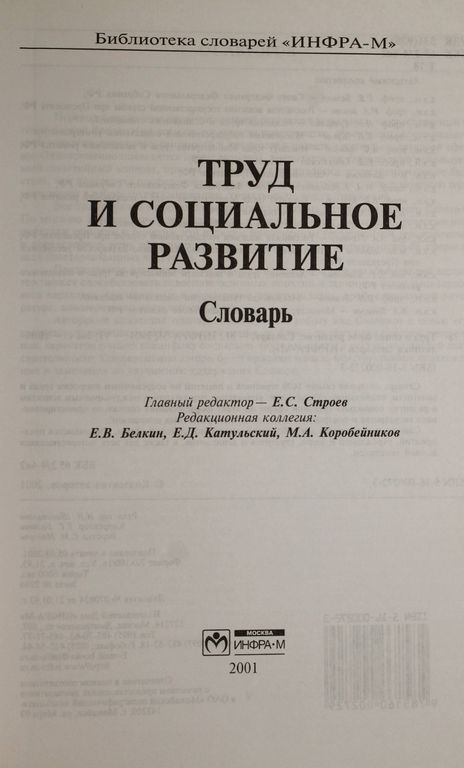 Труд и социальное развитие. Словарь. Гл. редактор Е.С. Строев. М.: Инфра-М. 2001г. 266с. Словарь содержит свыше 1600 терминов и понятий по современным вопросам труда и занятости, социального обеспечения, управления персоналом и международным аспектам в развитии социально-трудовой сферы на этапе формирования социально ориентированного государства и построения цивилизованных рыночных отношений. Словарь предназначен для работников социально-трудовой сферы, специалистов предприятий, учреждений и фирм, студентов и аспирантов, а также для всех интересующихся данной тематикой. Твердый переплет. Увеличенный формат. Очень хорошее состояние.