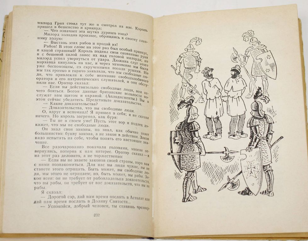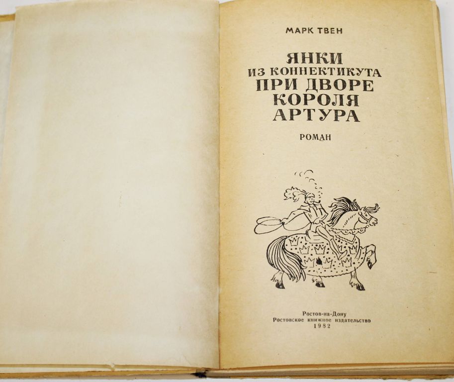 Твен М. Янки из Коннектикута при дворе короля Артура. Ростов-на-Дону: Ростовское книжное издательство. 1982г. 304с. Роман Марка Твена `Янки при дворе короля Артура` может быть с полным правом поставлен в один ряд с лучшими произведениями писателя. Эта необычная книга сочетает в себе фантастику, пародию и жизнерадостный юмор. Марк Твен просто не умел писать скучно, чему данный роман и служит прекрасным доказательством. С черно-белыми иллюстрациями Брюханова Д.А. Твердый переплет. Обычный формат. Хорошее состояние, потертость переплета.