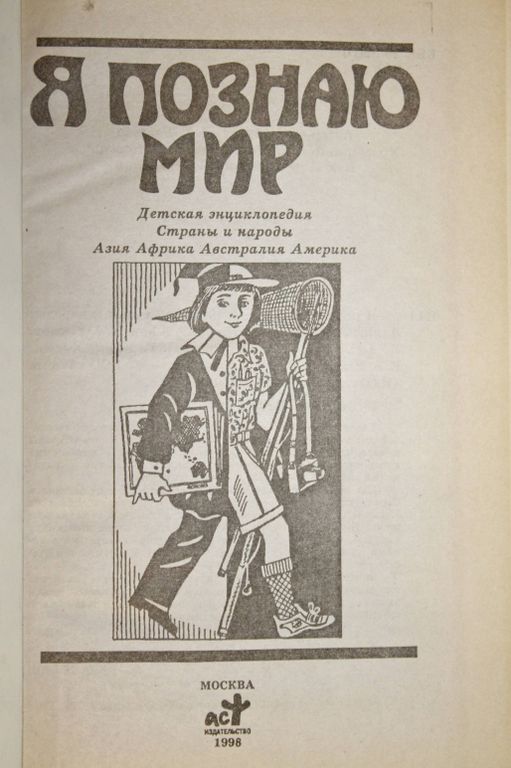 Я познаю мир. Детская энциклопедия. Страны и народы. Азия. Африка. Австралия. Америка. М.: АСТ. 1998 г. 592 с. Энциклопедия расширяет кругозор, помогает усваивать школьную программу по географии и истории. Рекомендуется в качестве дополнительного пособия для учащихся младших и средних классов школ, лицеев и гимназий. Твердый переплет. Обычный формат. Хорошее состояние.