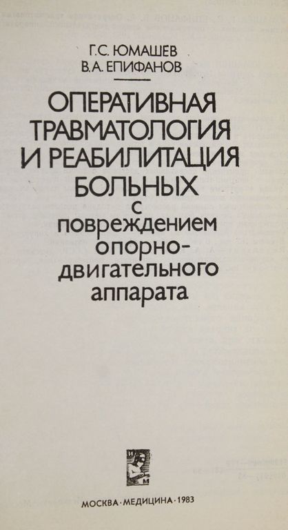 Юмашев Г., Епифанова В. Оперативная травматология и реабилитация больных с повреждением опорно-двигательного аппарата. Руководство для врачей. М.: Медицина. 1983г. 384с. В руководстве описаны принципы лечения открытых переломов, основы гипсовой техники, различные методы лечения повреждений опорно-двигательного аппарата и организационные моменты оказания помощи при повреждении трубчатых костей, костей таза и позвоночника. Особое внимание уделено оперативным методам лечения повреждений локомоторного аппарата и проблемам реабилитации больных с травмами опорно-двигательного аппарата. Обосновано применение оперативных доступов с точки зрения оперативной хирургии и анатомо-топографических взаимоотношений поврежденной костной ткани с другими органами и тканями. Изложены типичные аперации, выполняемые при повреждении трубчатых костей, костей таза и тел позвонков. С современных позиций рассмотрена методика послеоперационного восстановительного лечения больных, приведены методы лечебной физкультуры и трудотерапии, кратко освещены физические методы лечения. Твердый переплет. Увеличенный формат. Хорошее состояние.
