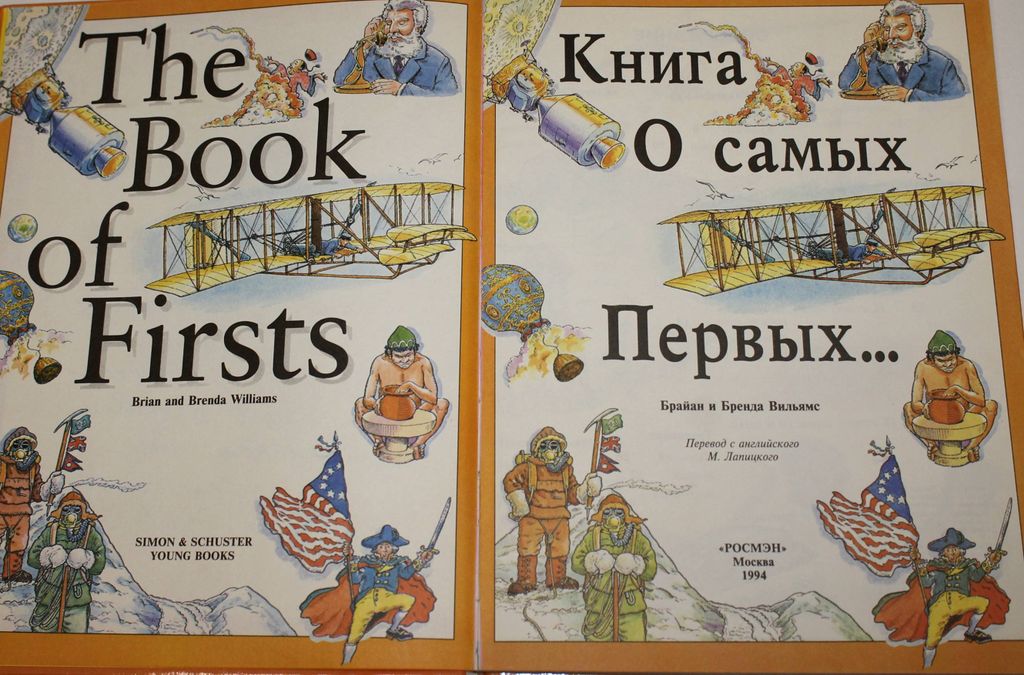 Вильямс Б. и Б. Книга о самых Первых. М.: Росмэн. 1994г. 59с., ил. Первый компьютер и первые марки, первые карандаши и первый зонтик...Первый римский император и первый государь всея Руси, первые исследователи Северного полюса и первая звезда балета...Все когда-то было самым первым.И наша книга расскажет вам об этом, познакомит с великими открытиями, достижениями, исследователями, рекордсменами, которые однажды стали первыми. Мир природы, техника, история, искусство , вот неполный перечень тем, которых коснулась эта книга. Надеемся, что она станет твоей,наш юный читатель, настольной маленькой энциклопедией. Твердый переплет. Энциклопедический формат. Хорошее состояние, дарствен. надпись.