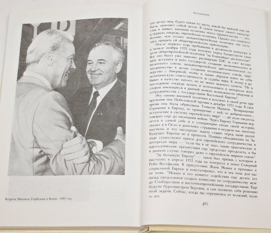 Брандт Вилли. Воспоминания. М.: Новости. 1991г. 528 с., ил. В книге Вилли Брандта рассказывается о жизненном пути этого известного политического деятеля, председателя Социнтерна, бывшего федерального канцлера ФРГ. Особое место в «Воспоминаниях» занимает вопрос объединения Германии. Твердый переплет. Увеличенный формат. Хорошее состояние.