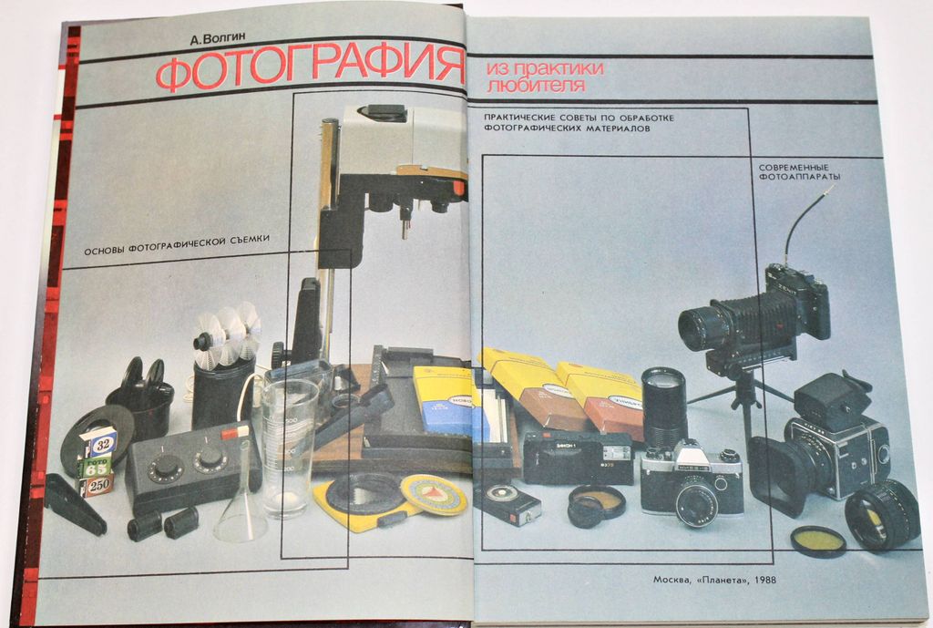 Волгин А. Фотография. Из практики любителя. М.: Планета. 1988г. 256 с.,ил. Книга делится на два основных раздела. Первый - знакомит с устройством фотоаппарата, с такими понятиями как объектив, фокусное расстояние, диафрагма, выдержка и др. В нем рассказано о принадлежностях и оборудовании, которые необходимы для съемки. Этот раздел лишен научности изложения, прост и доступен. Второй - посвящен практической работе. Здесь приводятся рекомендации о применении химикатов, приготовлении обрабатывающих растворов, подробно и последовательно разбираются процессы обработки фотопленок, фотобумаги и фотопечать. Твердый переплет. Увеличенный формат. Отличное состояние.
