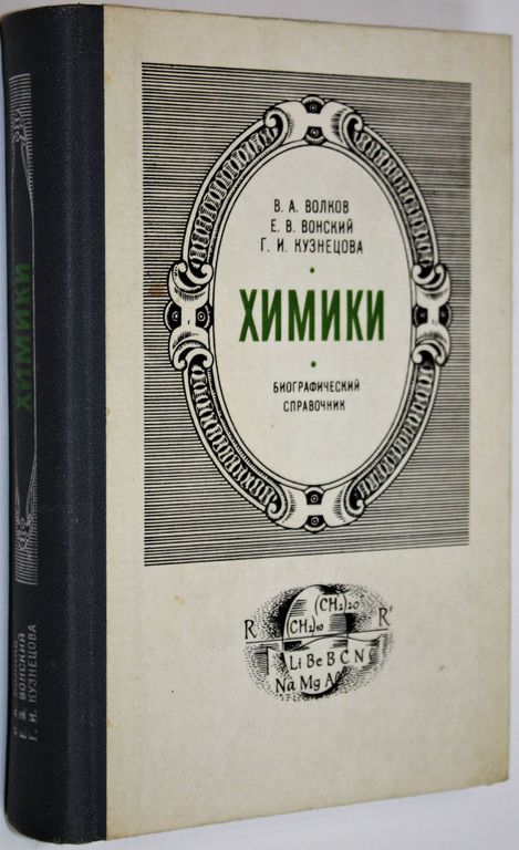 Волков В.А.,Вонский Е.В.,Кузнецова Г.И. Химики. Биографический справочник. Киев: Наукова думка. 1984г. 736 с.,ил. В справочнике помещены краткие сведения о жизни и научной деятельности свыше 1200 химиков прошлого и современности. Приведены хронология важнейших событий в области химии, перечень лауреатов Нобелевской премии по химии и краткий список литературы. Издание иллюстрировано портретами ученых, а также фотографиями оригинальных химических приборов и оборудования прошлого и настоящего, фотокопиями автографов выдающихся ученых, историческими снимками лабораторий и научных учреждений. Большая часть портретов и других иллюстраций публикуется впервые. Твердый переплет. Обычный формат. Хорошее состояние.