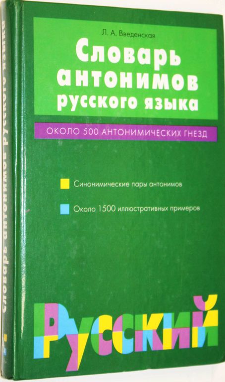 Введенская Л.А. Словарь антонимов русского языка. М.: АСТ. 2002. 200 руб. В корзину Описание Описание Введенская Л.А. Словарь антонимов русского языка. М.: АСТ. 2002. 445с. Твердый переплет. Увеличенный формат. Хорошее состояние. Вас также может заинтересоватьВ корзинуКеворкина И.Б. Учебник немецкого языка. М.: Высшая школа. 1976.200 ₽ В корзину
