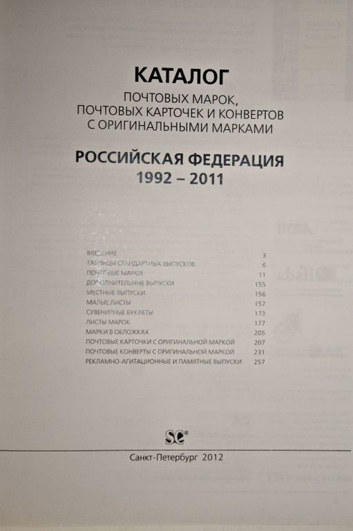 Загорский В.Б. Каталог почтовых марок 1992—2011. Российская Федерация. СПб.:Стандарт-коллекция. 2012г. 280с.,ил. В каталоге-справочнике представлены знаки почтовой оплаты Российской Федерации. Дана оценка филателистического материала в рублях. Рассчитан на коллекционеров, торговцев марками, экспертов, музейных и архивных работников. Отличная полиграфия, удобный для пользования дизайн. Мягкий переплет. Обычныйфлромат. Отличное состояние.