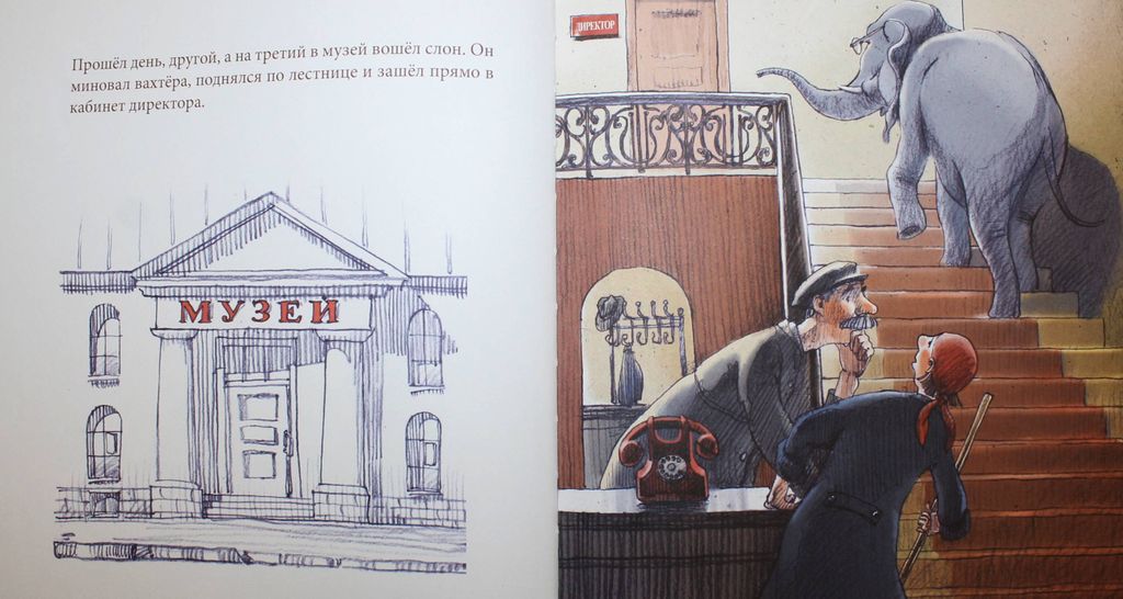 Зартайская И. Слон в музее. Худ. Е.Бауман. СПб.: Поляндрия. 2015г. 36 с. В одном маленьком и малоизвестном музее появилось объявление: `В зал скульптуры требуется смотритель`. Эта история могла стать самой обычной, если бы смотрителем не устроился работать... слон, который очень любил тишину и искусство…Твердый переплет. Увеличенный формат. Очень хорошее состояние.