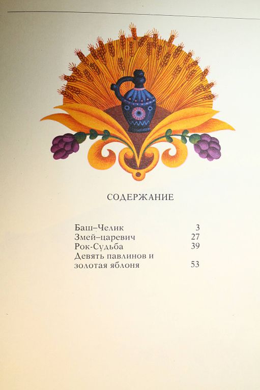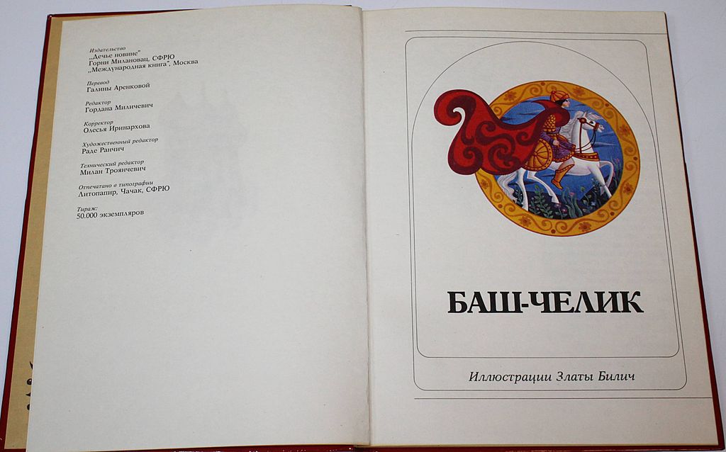 Сказки. Иллюстрации Златы Билич. Горни Милановац- М.: Дечье Новине., Международная книга 198?г. 70 с., ил. В книгу вошли четыре сказки народов Югославии: Баш-Челик, Змей-царевич, Рок-судьба, Девять павлинов и золотая яблоня. Замечательные яркие декоративные полноформатные иллюстрации. Твердый переплет. Энциклопедический формат. Хорошее состояние. Оборван задний форзац.